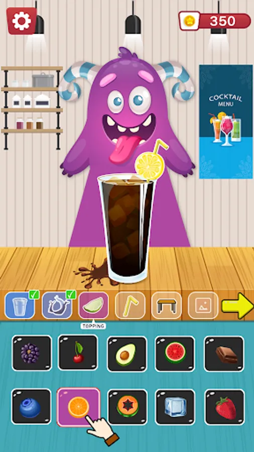 🍸 Provide a large selection of beverages, fresh fruits, and toppings with realistic visual effects.