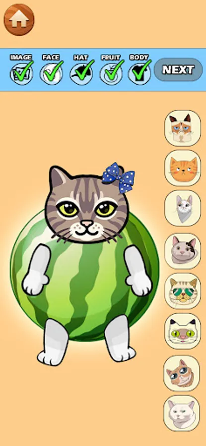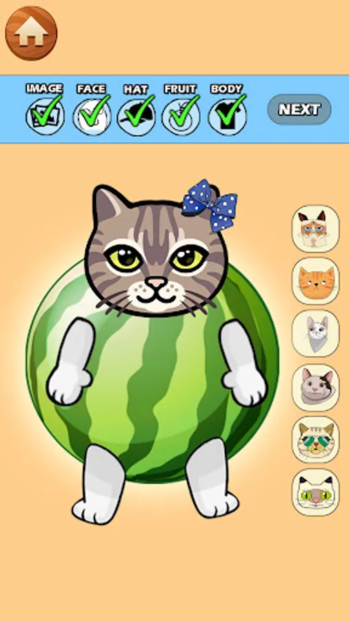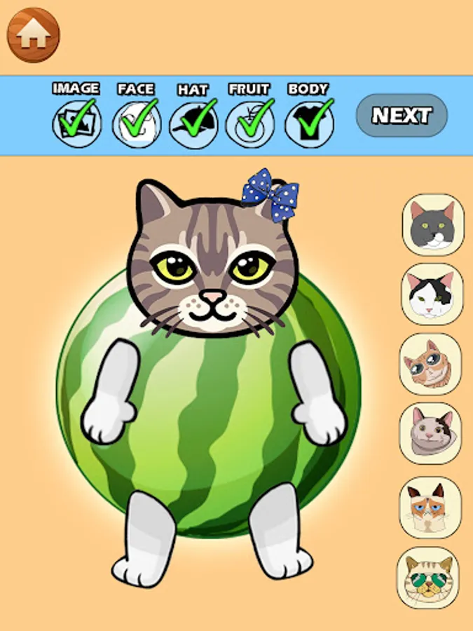 😺 Create more fun & unique fruit cats by unlocking special parts.
