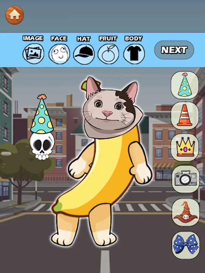 Let your creativity run wild! Make your own meme cat by combining it with whatever you like, such as banana, apple, fruits, or foods, and then watch amusing dancing.