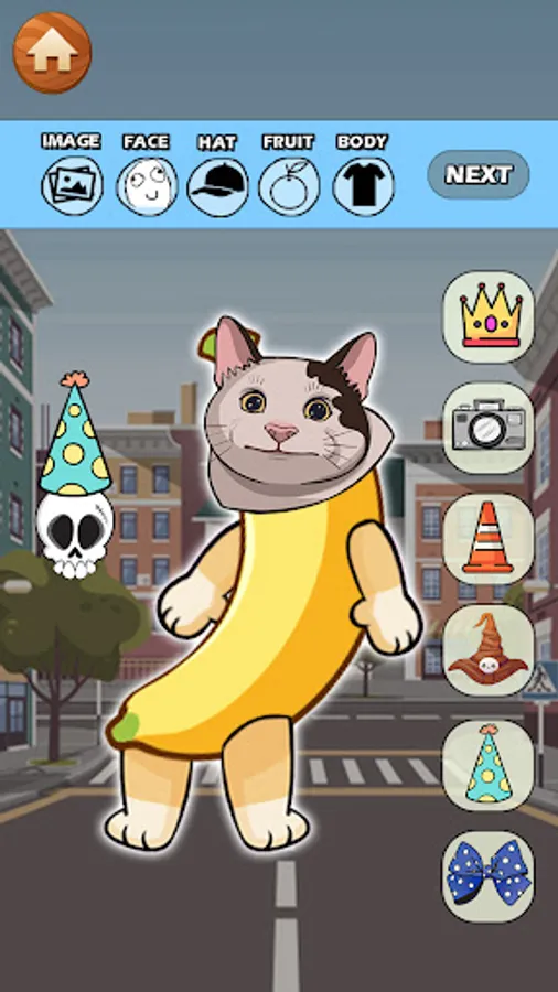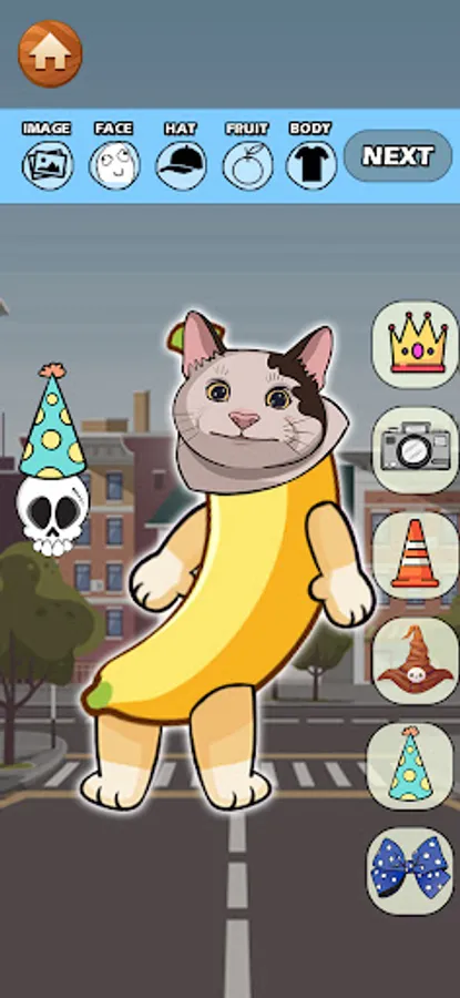 With Banana Talking Cat Meme Makeover you can mix and match different fruits and foods to create your own unique cat meme. Choose from a variety of accessories to makeover your cat look even more hilarious.