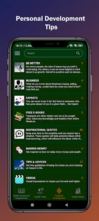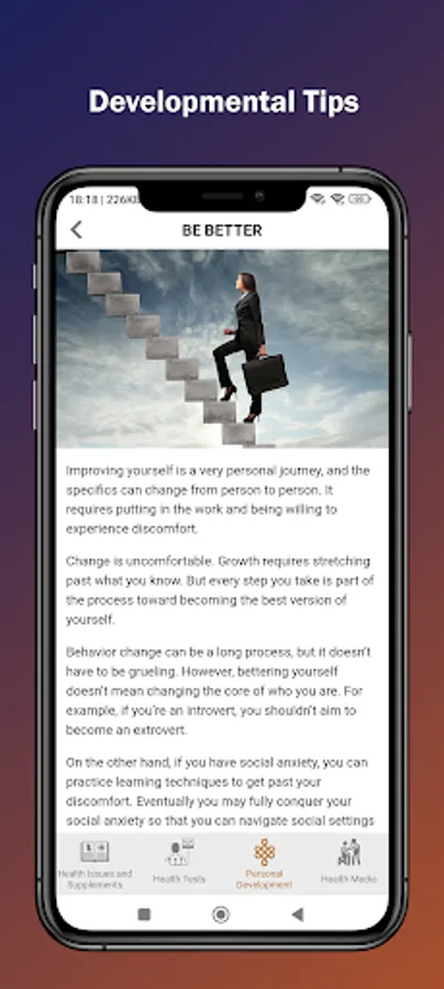 MaxHealth Application provides information about Health issues and supplements, Personal Development Tips, Health Quizzes and lots more...