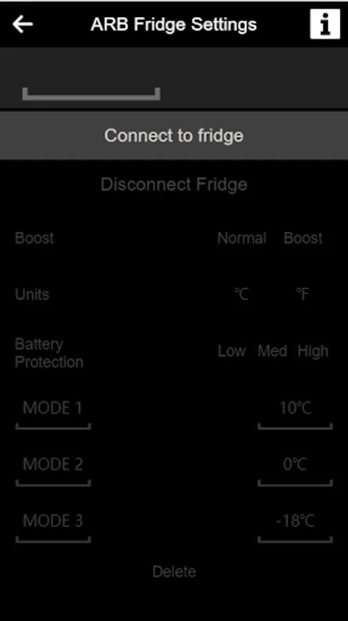 ARB Zero Fridge Connect can be used to monitor and control the ARB Zero Fridge/Freezers (Single and Dual zone). Available feature include: