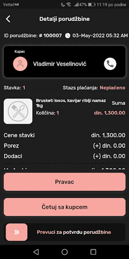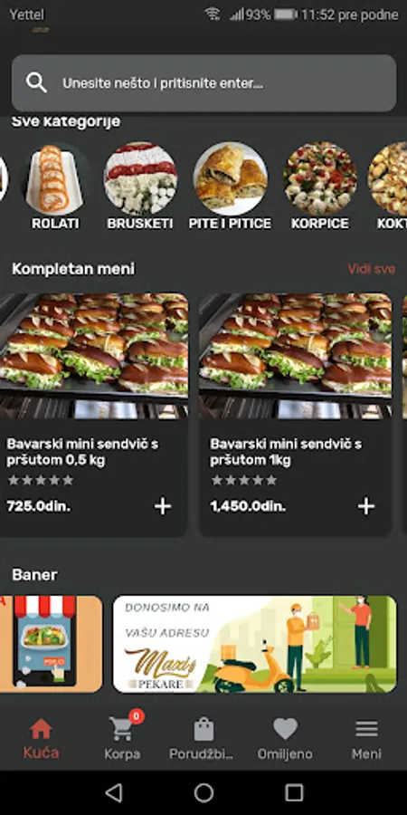 Application for ordering catering in Maxi Bakeries, Belgrade. The user can order food from the Maxi bakery via the application and receive it by delivery to the specified address.