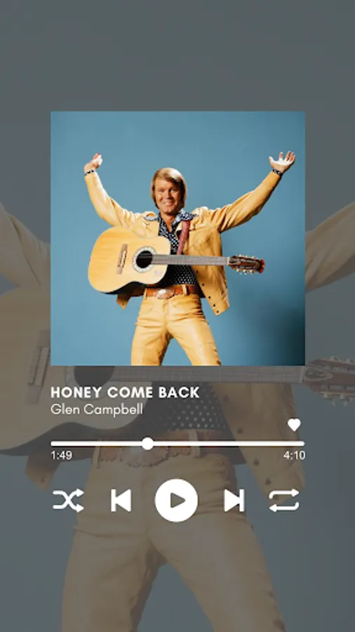 Whether you're a long-time fan or just discovering the magic of Glen Campbell, this app is your gateway to an unforgettable musical journey. Create your personalized playlist and listen to your favorite songs on repeat. Sing along to every word, feeling the emotional depth of each note.