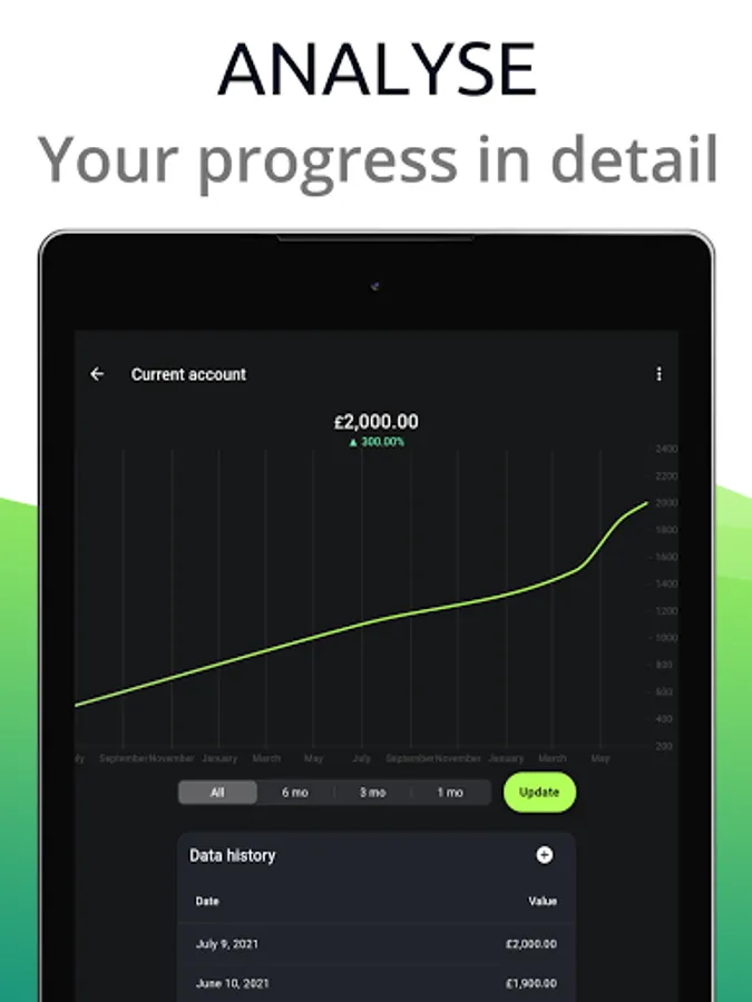 Worth it will prompt you when you need to update them and will help you keep an eye on your net worth. A simple step to financial stability.