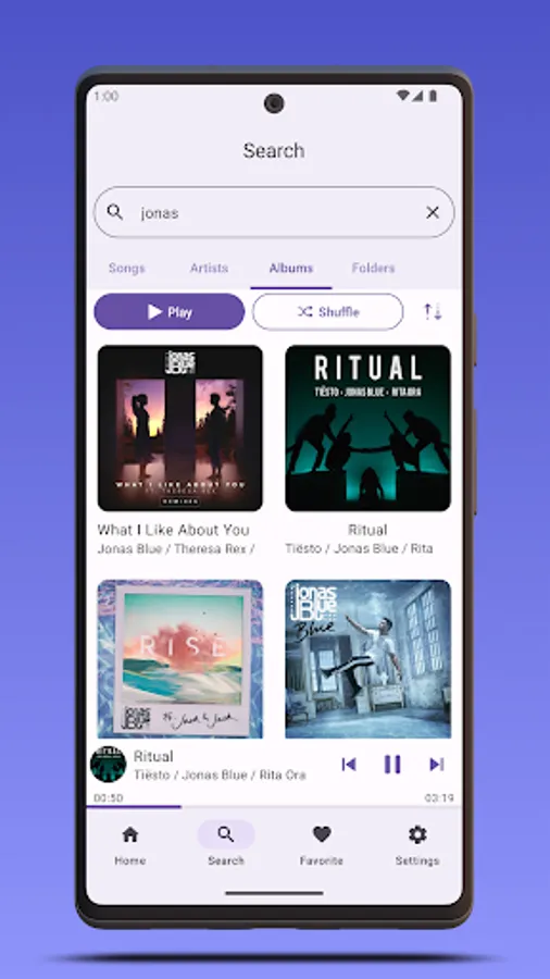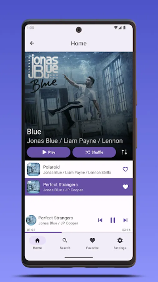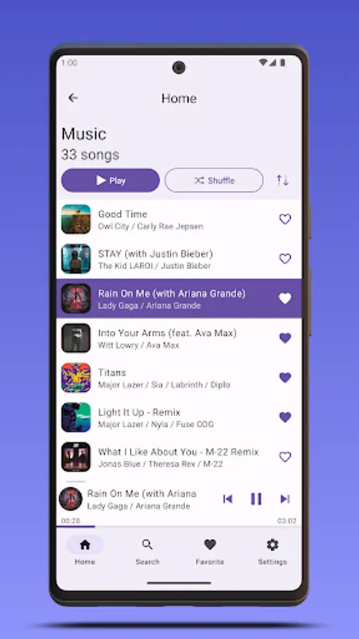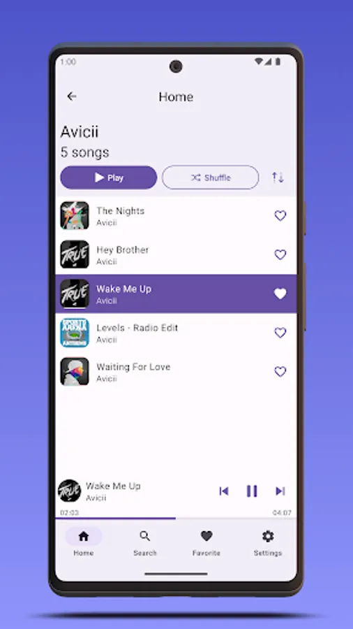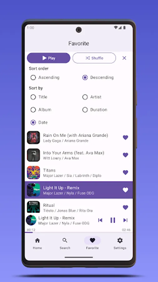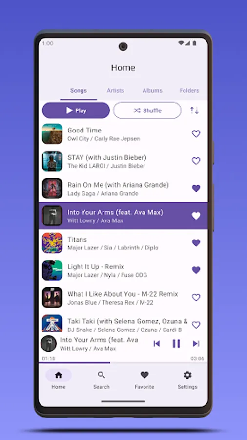 With our Music Player app, you can easily access all the songs on your device and organize them according to your preferences. Our app offers multiple ways to view your songs, including by songs, artists, albums, folders, and custom user-created playlists. You can add songs to your favorites with just one tap from the media notification or player screen.