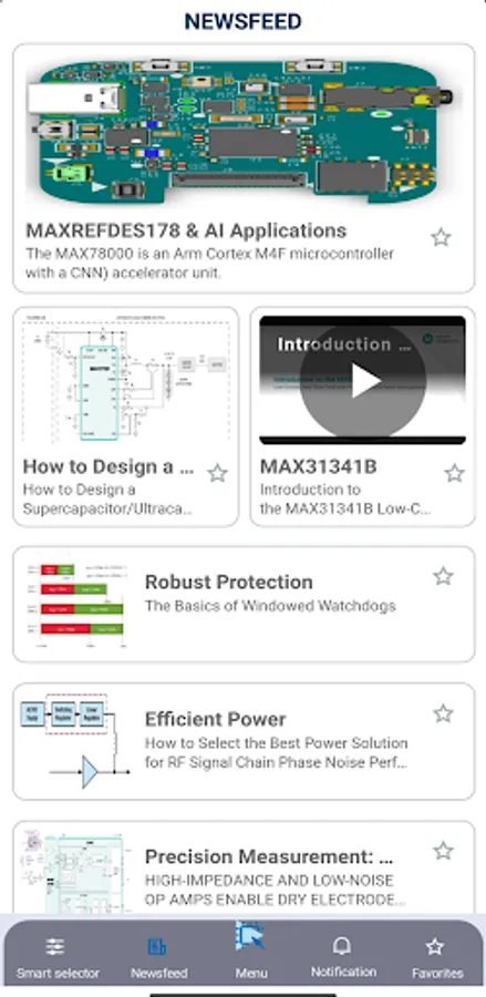 The Analog mobile app gives you the resources to push the limits of innovation with core analog building blocks. You’ll get a deeper dive into our portfolio featuring efficient power, precision measurement, reliable connectivity, and robust protection ICs.