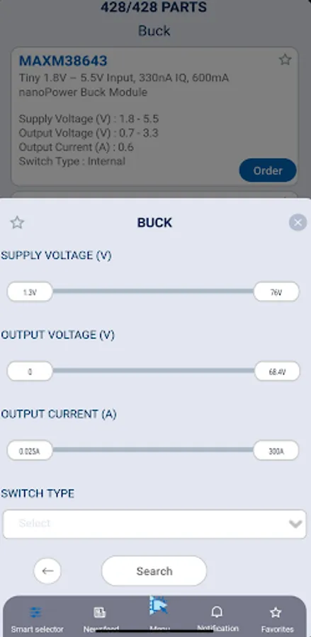 - Search and select the right part for your application, even when you are offline