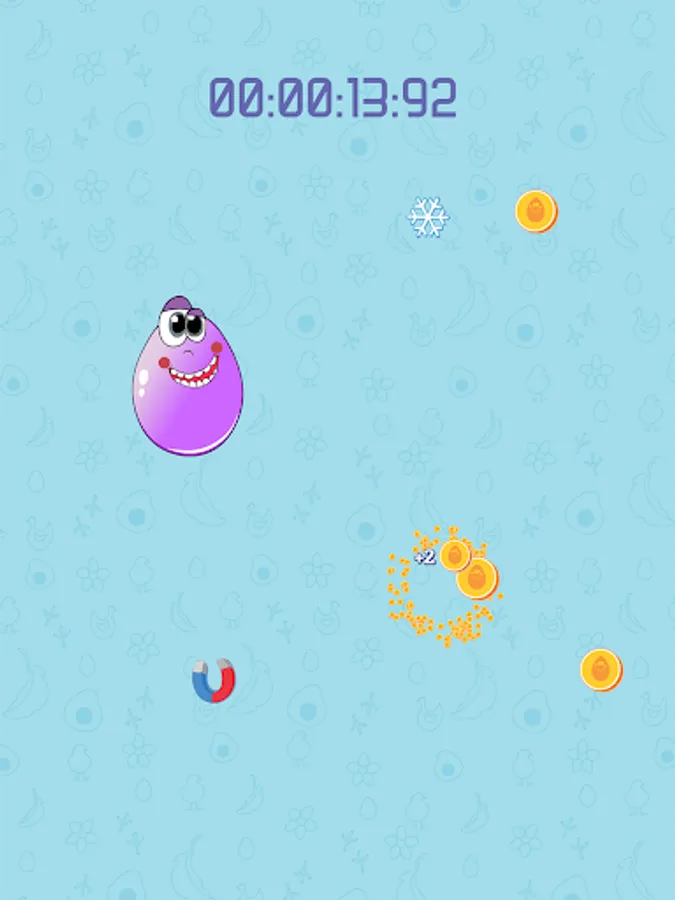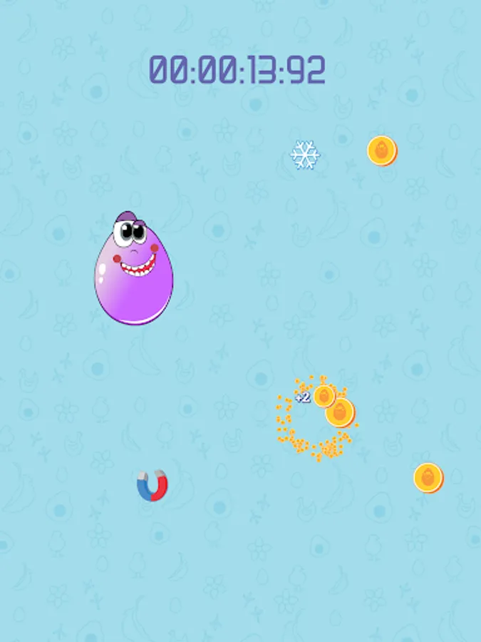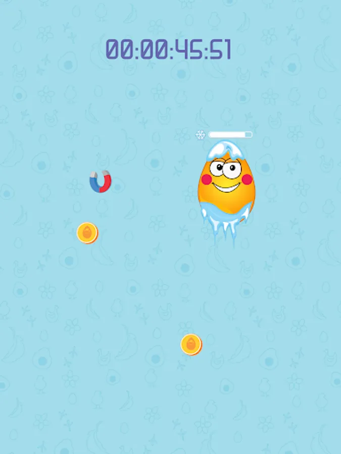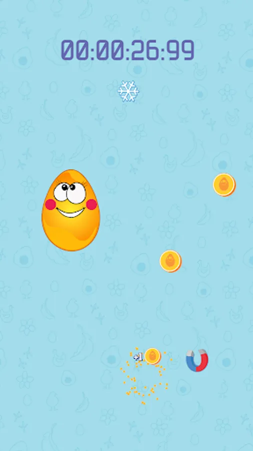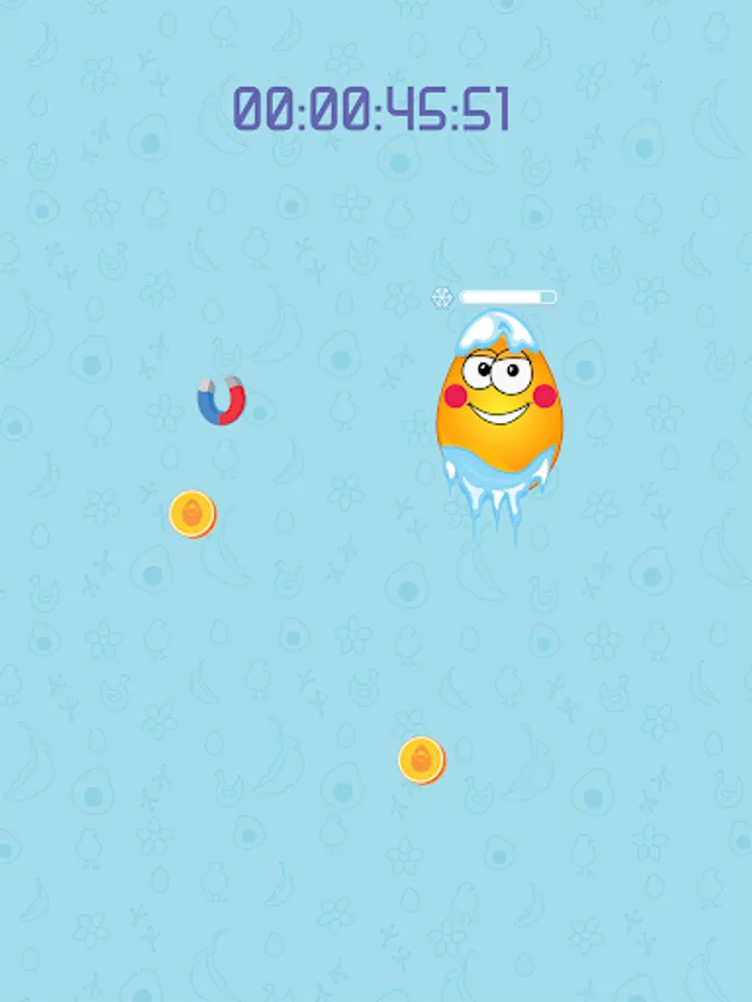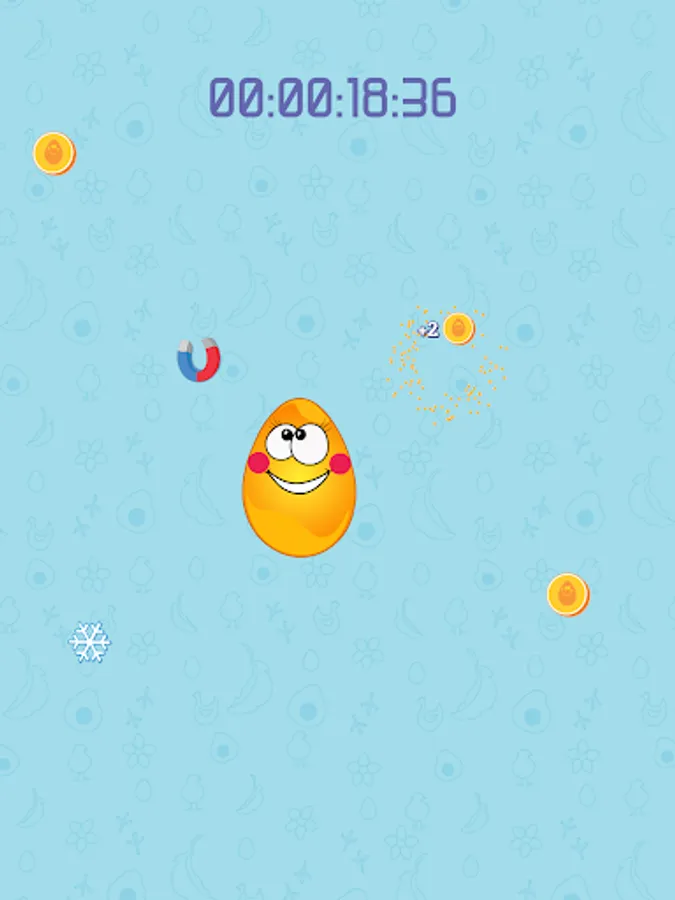 Put your finger on the egg in the middle of the screen. The egg will start to move, you have to move your finger along with it. No matter what happens, don't put your finger away from the egg! You can also use any other available finger/hand/body part/person to collect the appering coins and power-ups.