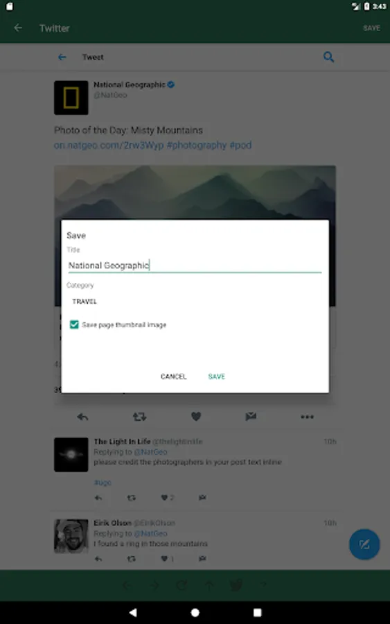 Saved tweets will be stored on your device, and you can access them anytime, anywhere.