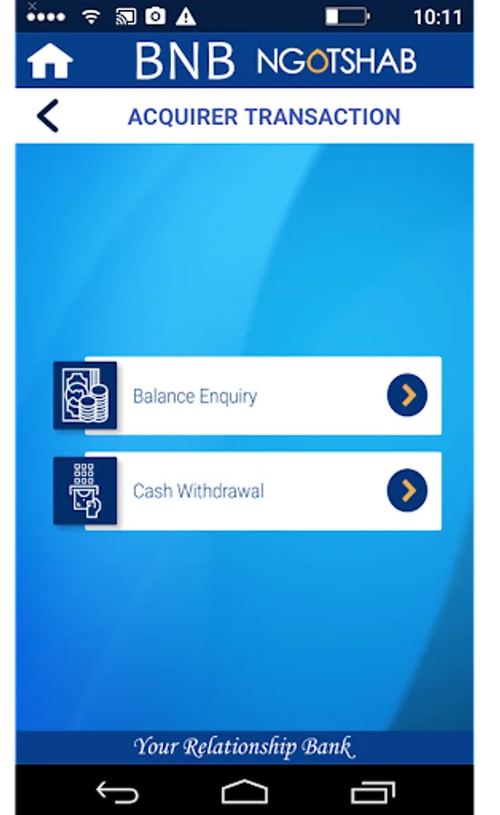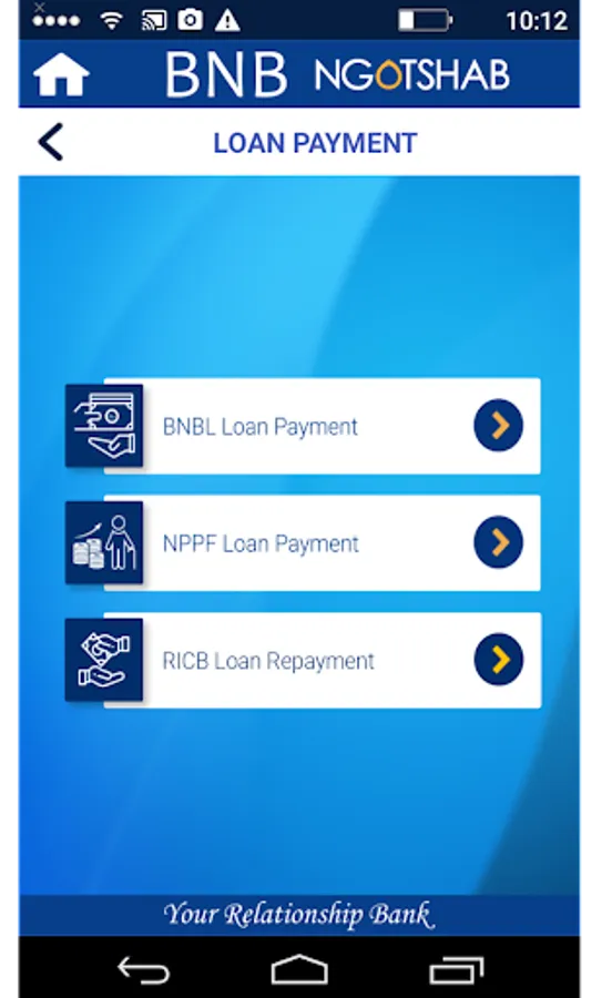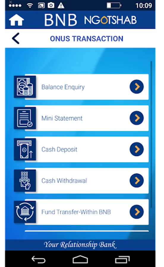 BNB Agency Banking (BNB Ngotshab) Application is used by Bhutan National Bank's agent across Bhutan. It provides features that enables easy and convenient banking without the hassle of having to visit the bank. If you are interested to become one of our banking partner kindly contact 6070.