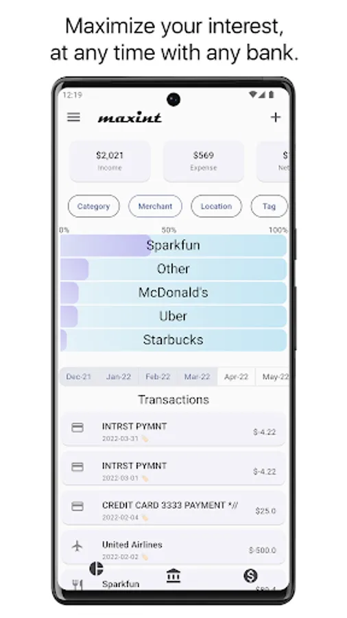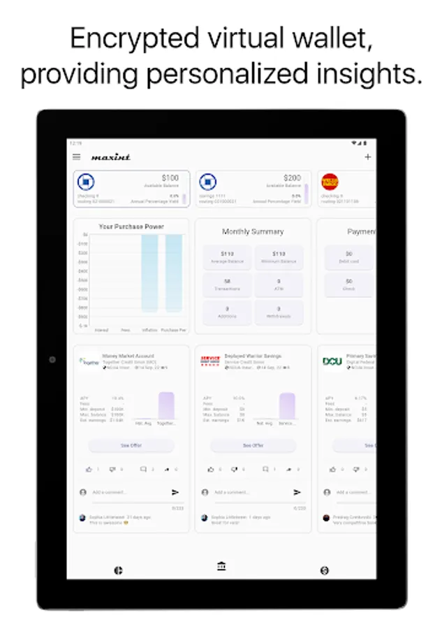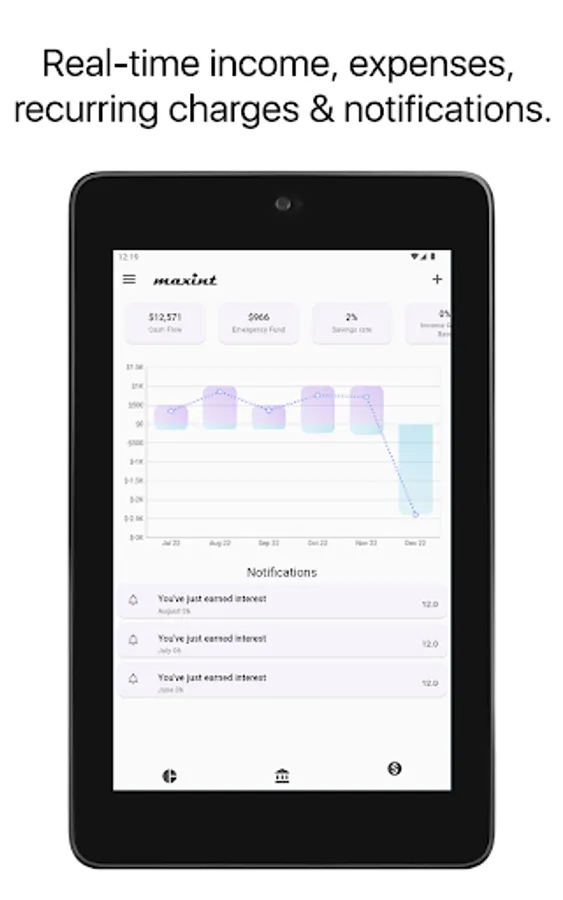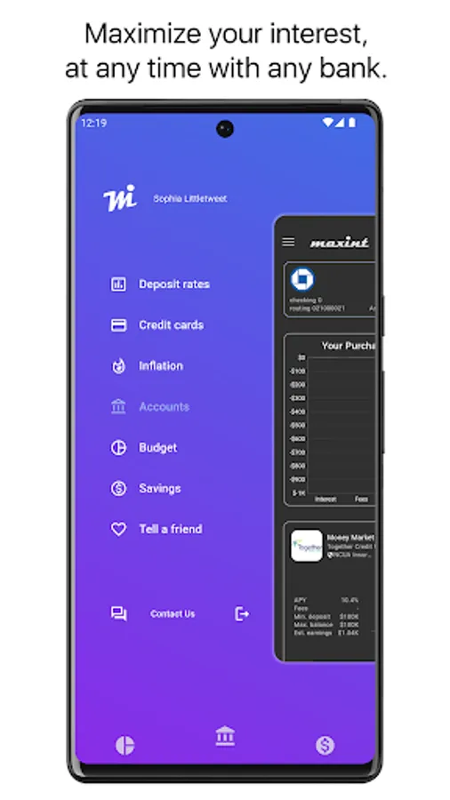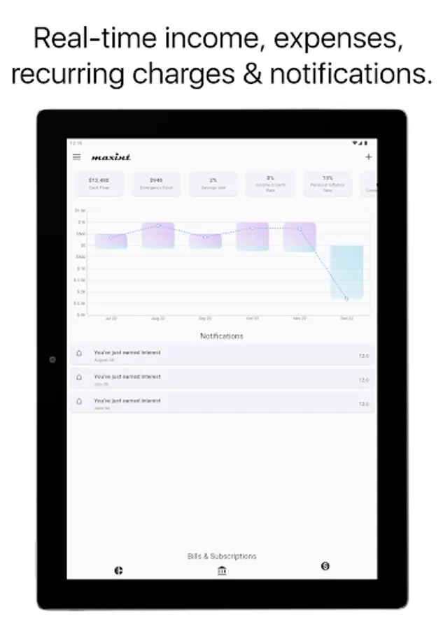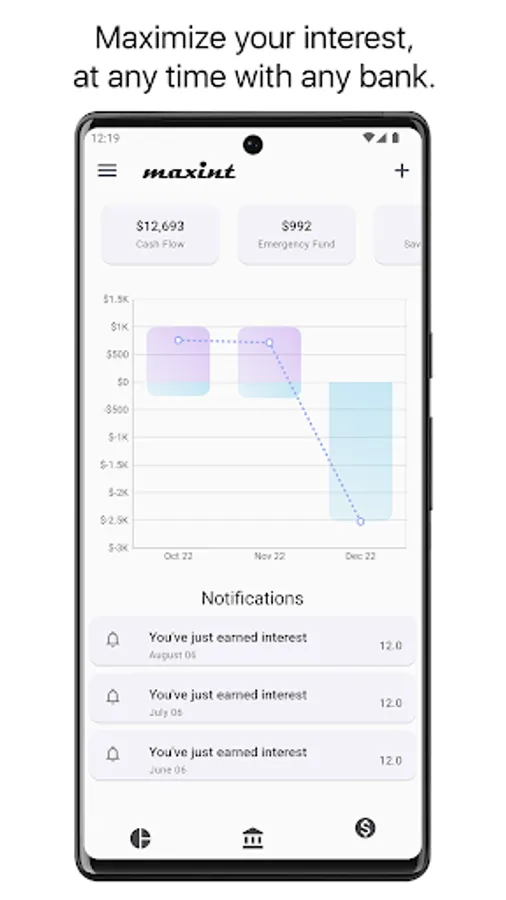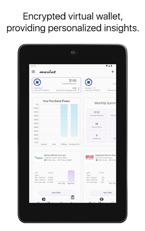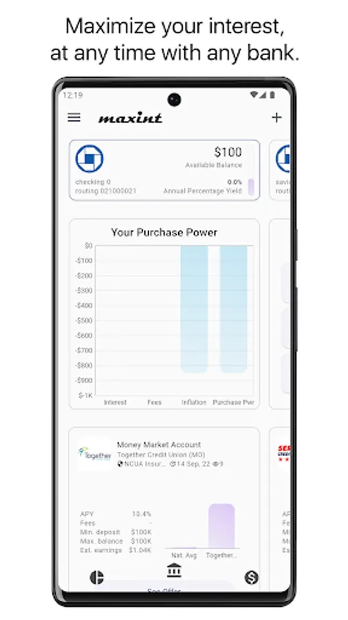 Maxint helps you gain insight into the purchasing power loss of your monies sitting in zero interest accounts, due to inflation, and recommends you the highest interest earning accounts based on your personal needs at any given point in time.