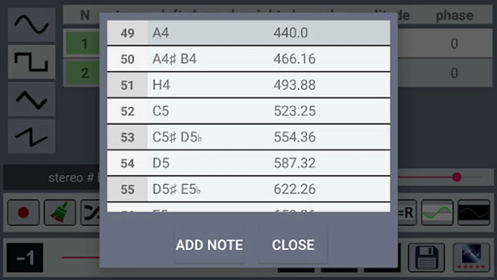 Sound frequency generator reproduces several frequencies simultaneously. This app can be used to generate different tones by defining the wave form, the frequency.