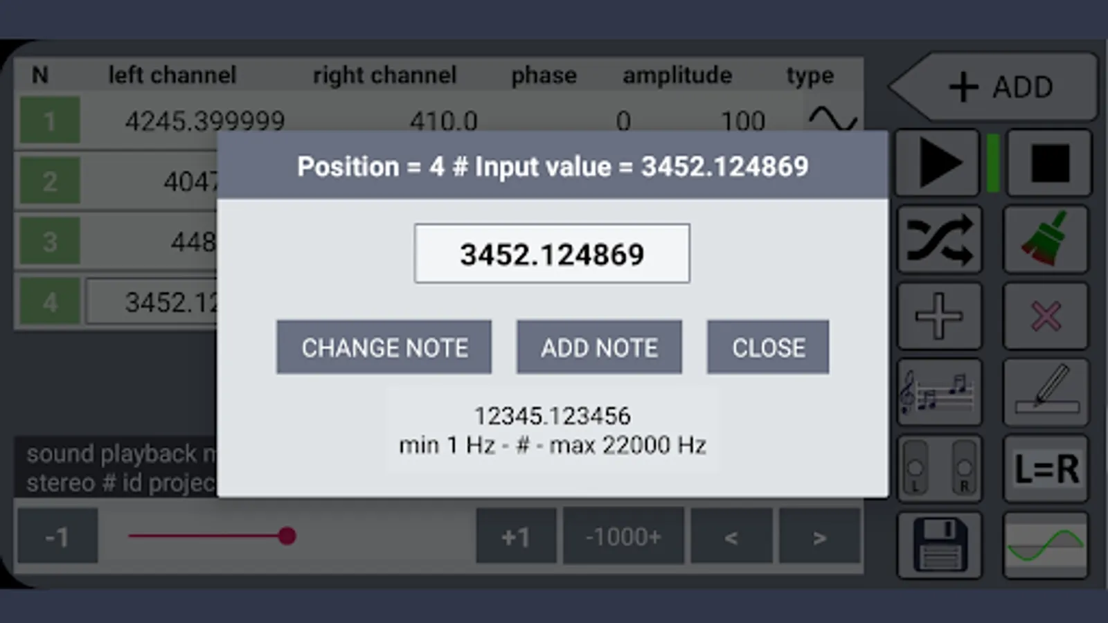 It produces accurate tone & soundwaves while being simple and easy to use. Add up to 10 different frequencies and create one sound. You can change the fractional frequency values.