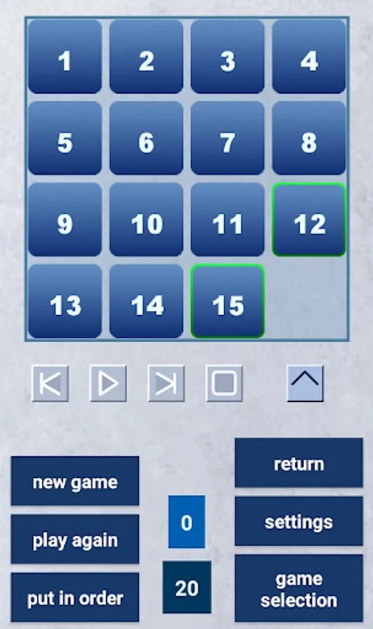 15-puzzle is a classic sliding puzzle game. Your goal is to arrange tiles in numerical order (left-to-right, top-to-bottom) by moving puzzle tiles.