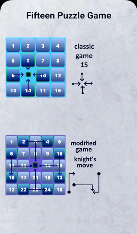 Invented by Noah Chapman, Fifteen requires moving the tiles on the box using the blank square field, to achieve their ordering by number, preferably by making the least possible moves.You finish the game when you are done placing the knuckles in ascending order from left to right and top to bottom.