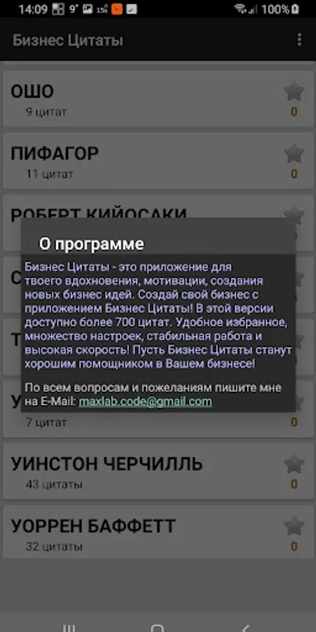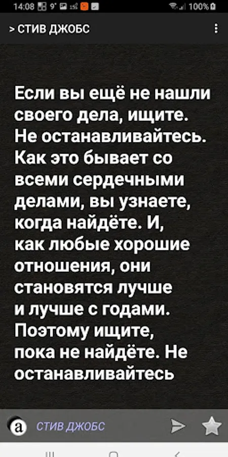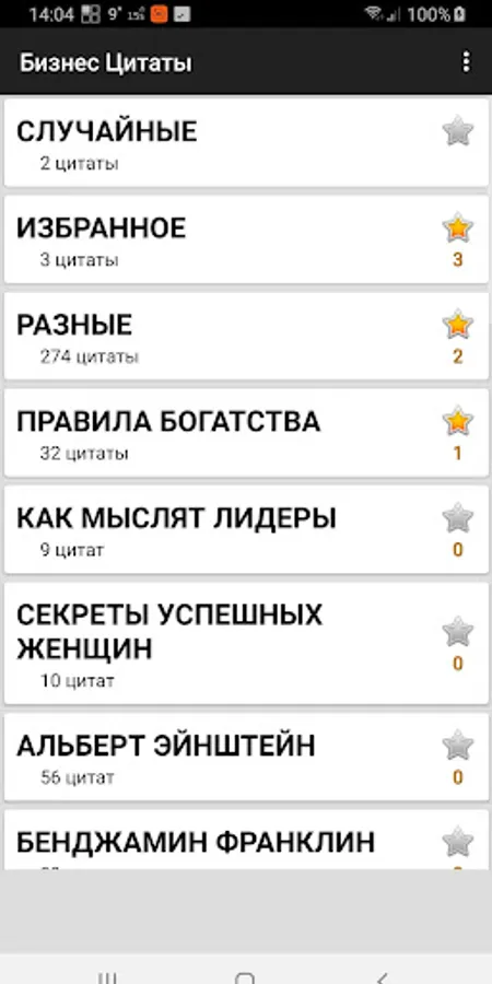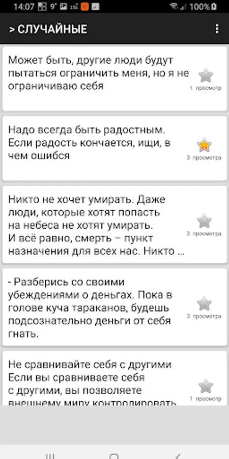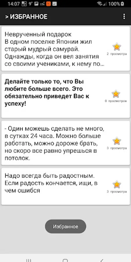 ♦ You can add to favorites and delete by clicking on the asterisk both in the list of category citations and in the mode of viewing quotes.