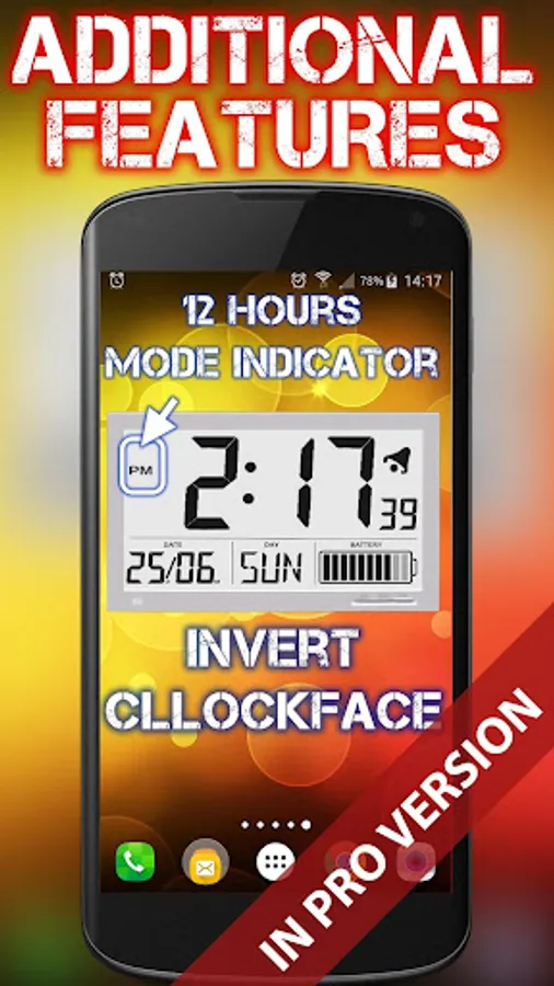 ♦ 12 hours (AM/PM) - 24 hours switching (in the full version!)