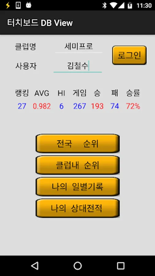 Game content of the touch board for athletes user can see the contents of the rankings, AVERAGE, odds, totally relative, etc.