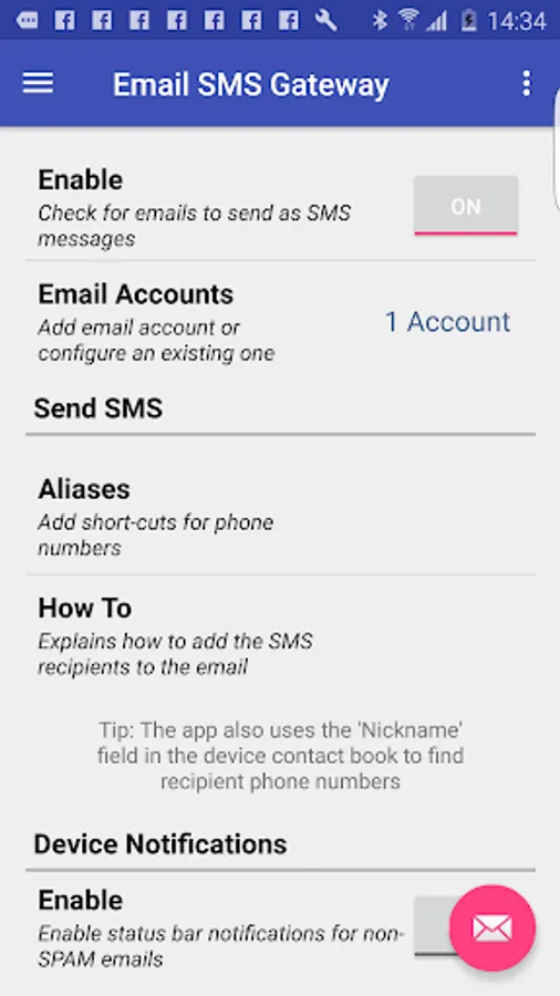 • GMail: If you plan to create a specific email account for use with the app please use a GMail account for 2 reasons 1. GMail supports IMAP-IDLE which gives immediate push-mail conversion to SMS 2. They support password-less authentication for maximum security.