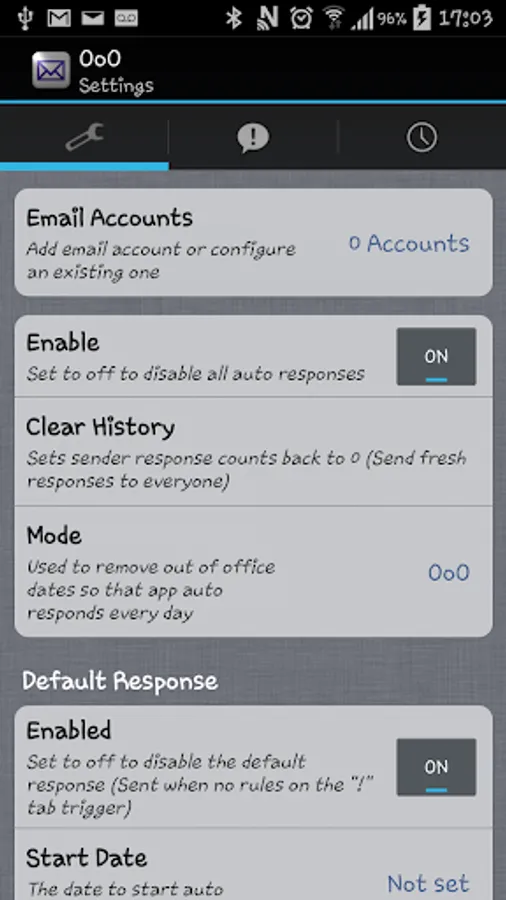 • History: Shows a record of all auto replies made by the app