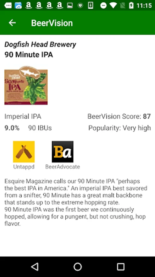BeerVision allows you to make informed choices about beer as quickly as possible. No more manually searching for every beer name when trying to pick what to drink. Just snap a picture of a menu to get all the beers ranked by user ratings.