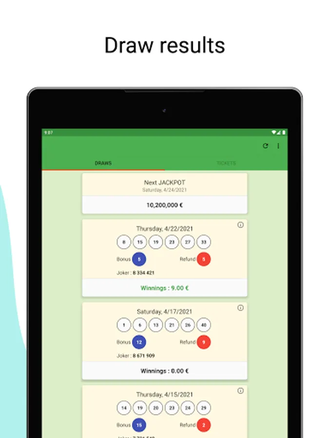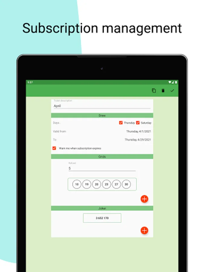 -Save your playing lottery tickets into the application