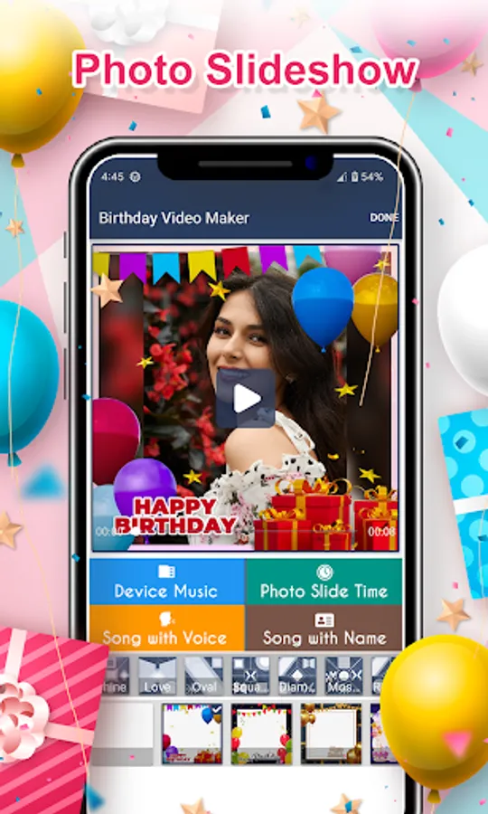 Birthday Photo Video Maker with Music is an effective app that lets you make short videos from photos and music that have a tonne of sounds, special effects, transitions, frames, filters, and other elements.