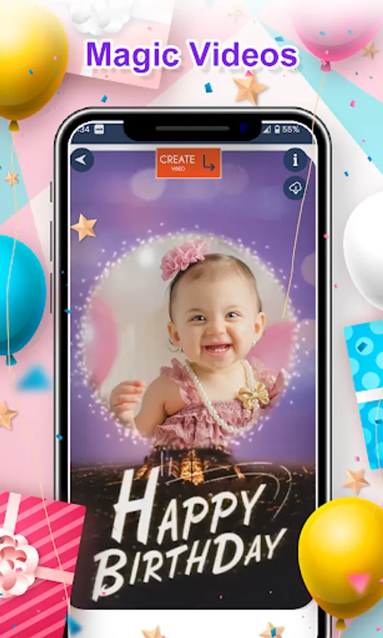 Birthday video maker with photo and music will help you create videos to save special events in your life that we may watch and recall in the future.