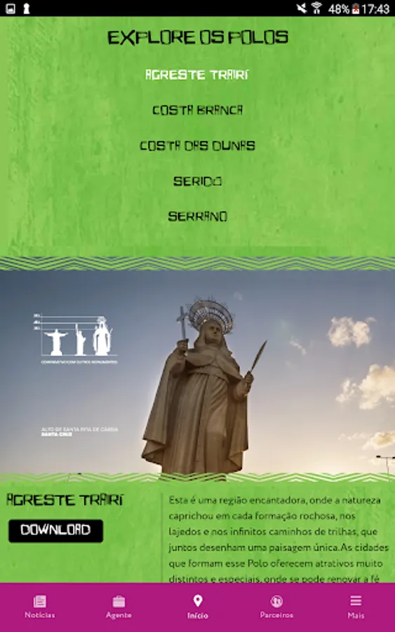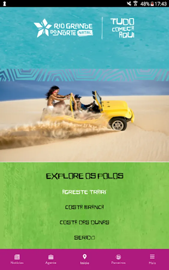 The tourist potential of Rio Grande do Norte is mapped according to its main attractions, where each pole offers surprises and unique experiences to its visitors. Agreste-Trairí, Costa das Dunas, Costa Blanca, Serrano and Seridó guard the main points for tourism in the state.