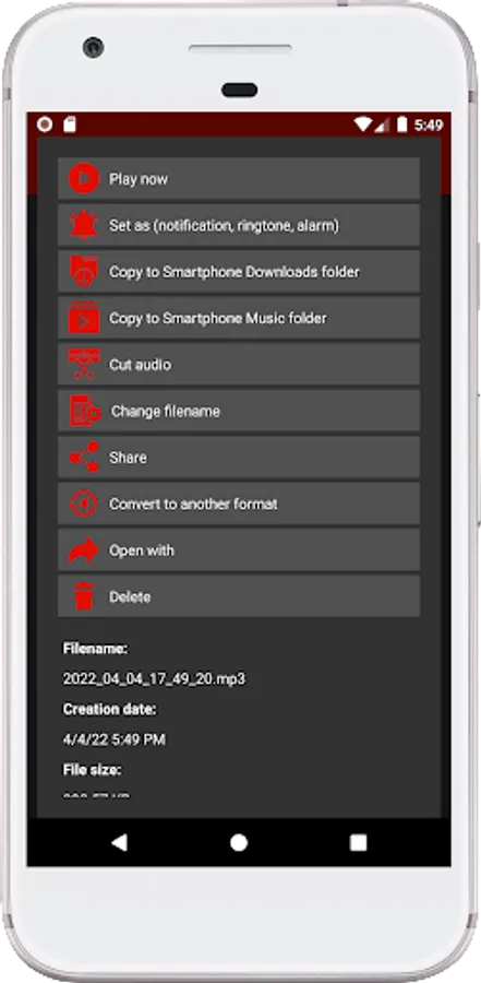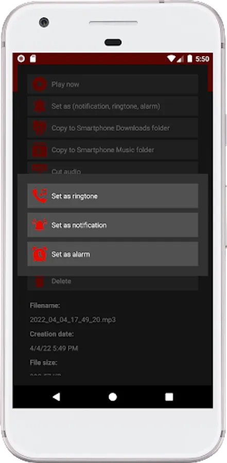 - Setting any audio in ringtone, notification or alarm (alarm clock)