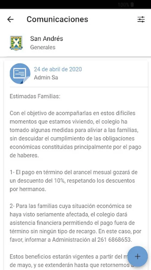 With the school app, parents, students, teachers and managers are in a common space to share all the information of the school San Andrés