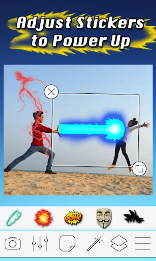 Modify your photos, add super photo effects and stickers, superpower effects (kamehameha, beam cannon, laser, rasengan) , face booth (masks, glasses), troll face (meme maker), cartoon camera, tatoo, weapons, wings and insta photo filters.