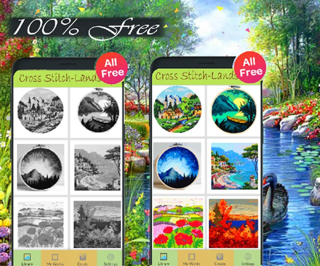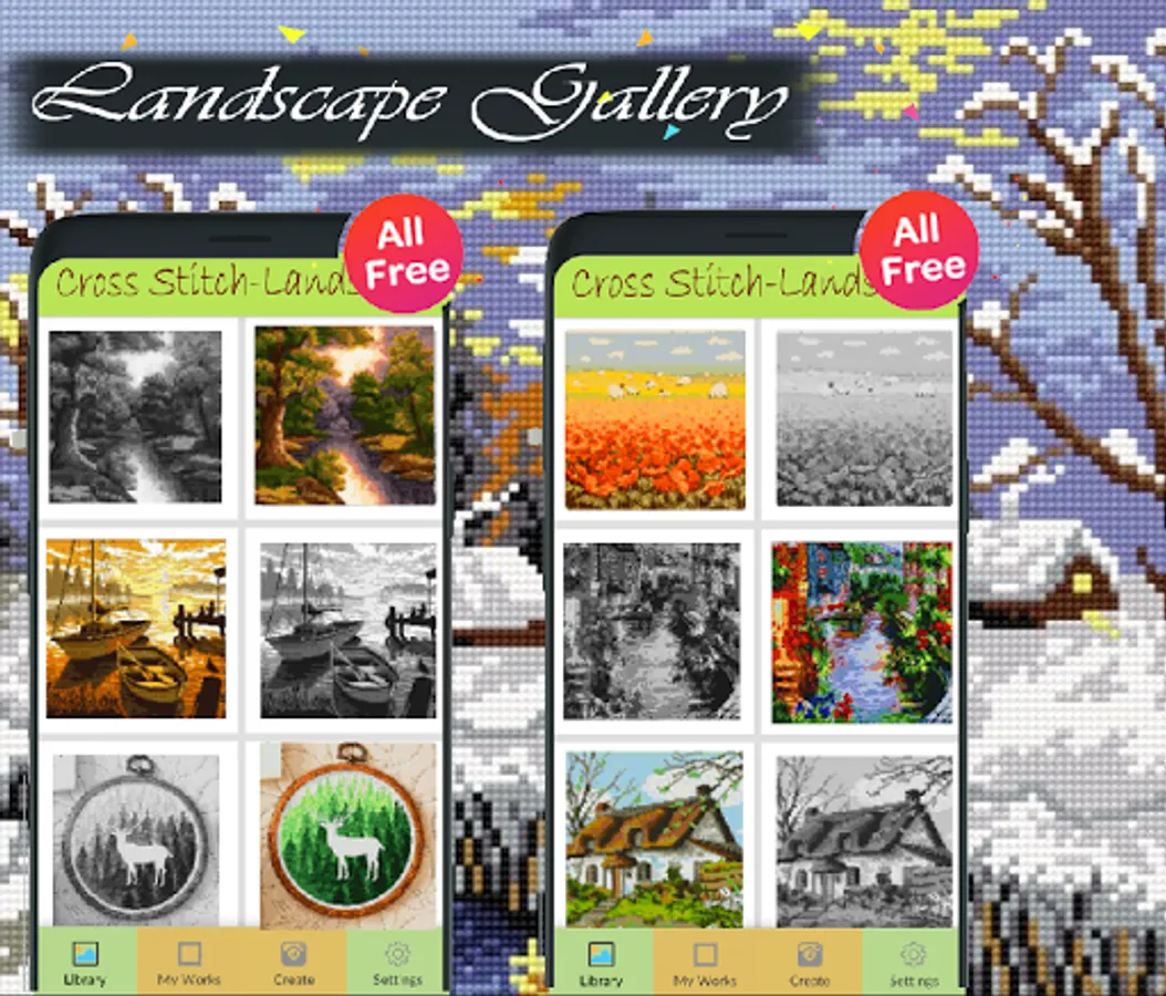 Many images are ready to choose, you can choose various pixel images on-line or off-line, you can color Cross Stitch Landscape Every day updating images is different so you can experience the most exciting picture;
