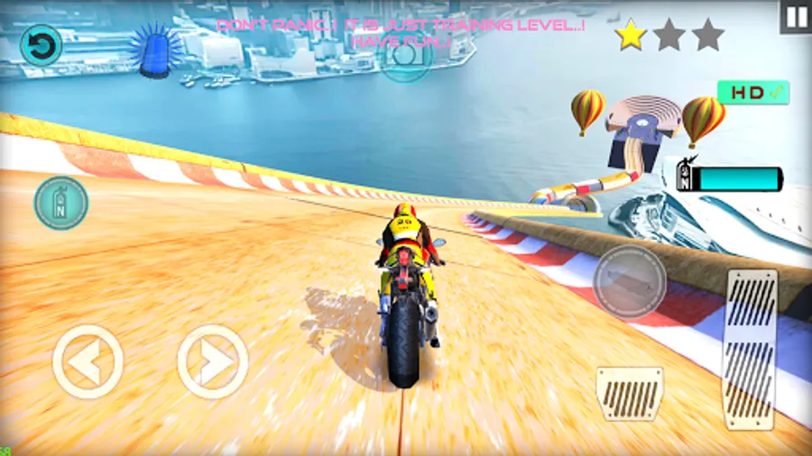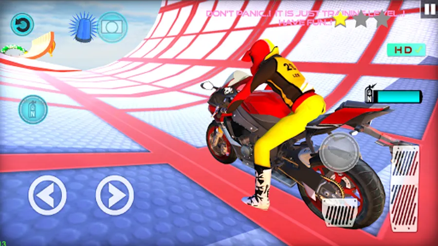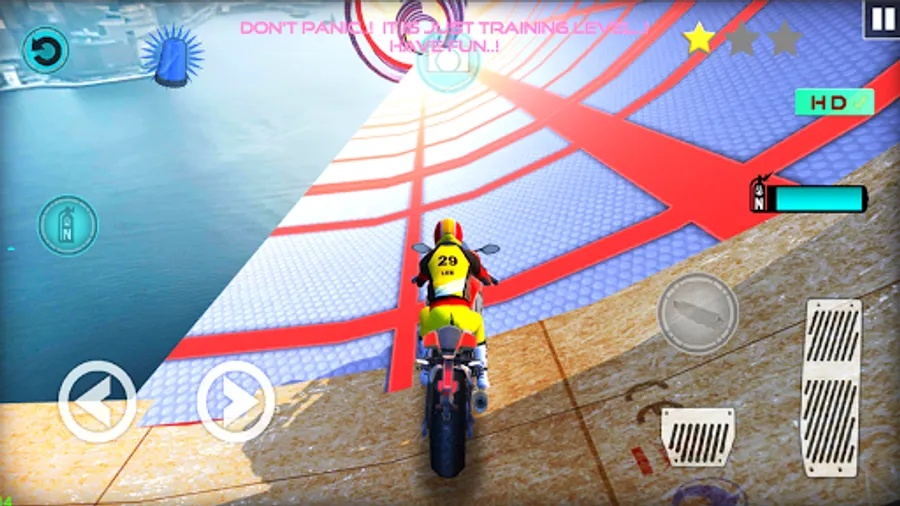 You have to complete each motorcycle challenging level in order to unlock the next one, you can use the several camera views for better experience to avoid the obstacles and fall downs from the ramps.