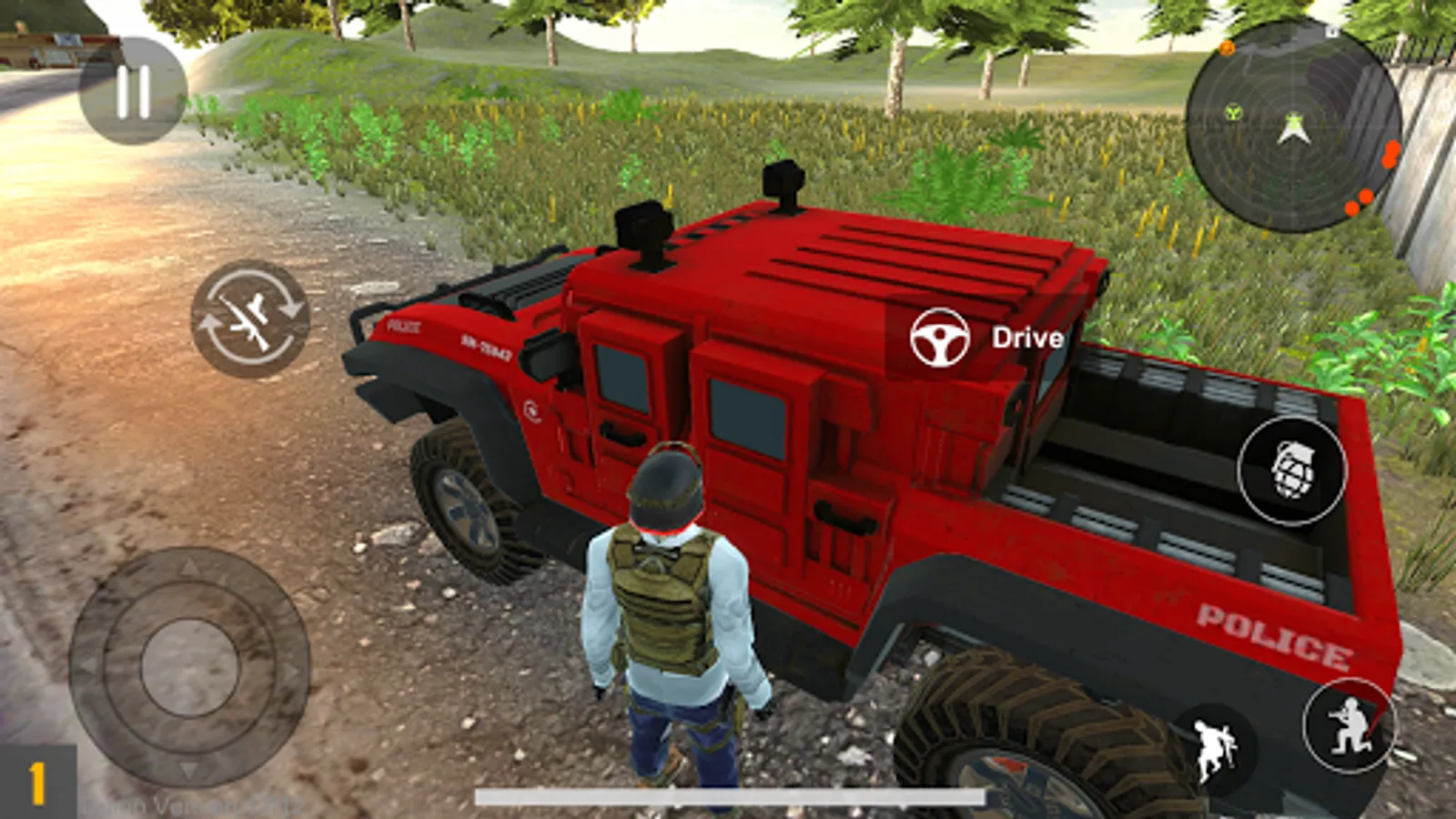 Drive vehicles to explore the map, hide in trenches, or become invisible by hiding under grass.