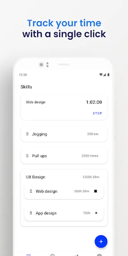 SkillApp is a simple skill tracker that does not have any complicated features or achievements, so you can focus on being productive. Just choose a skill and start the timer.