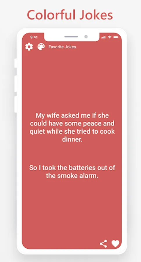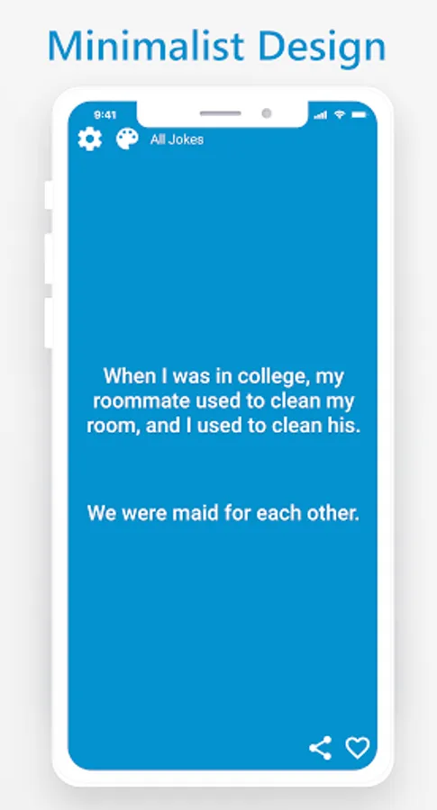 This application has a very colorful and minimalist design made to let you fully enjoy these jokes. The punchline is not immediately revealed to let you get surprised. We hope you will like them !