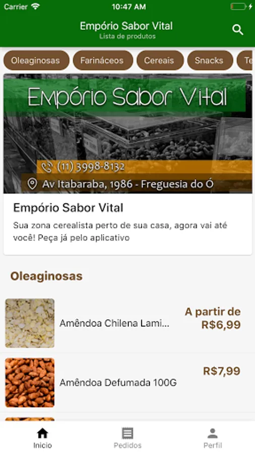 Empório Sabor Vital, located in the parish of Ó is your cereal area close to home, now it's coming to you! We sell oilseeds, cereals, snacks, etc... Order via delivery!