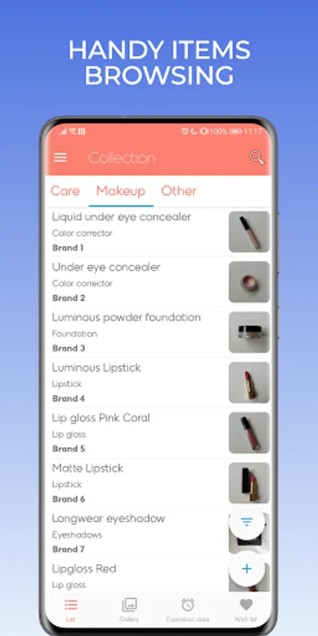 Add your new cosmetics in a few seconds or add all the information about the new product to get the most comprehensive statistics. You can also write down your impressions about the usage of the item and attach a photo or an image from your smartphone to it.