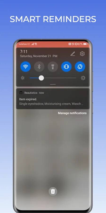 There is no need to remember the dates of opening packages and cosmetics expiration dates. Beautistics will do it for you. It’s enough to allow notifications, and the application will notify you about the products that are expiring soon or already expired