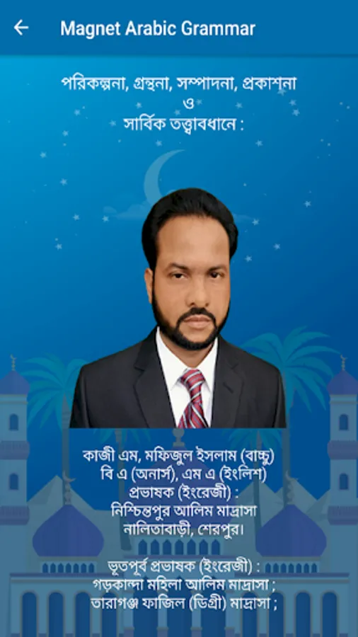 বইটি সকল শ্রেণীর শিক্ষার্থীদের জন্য এবং অারবী বিশ্ববিদ্যালয় ভর্তি সহ অারবী বিষয়ক সকল প্রকার ভর্তি ও নিয়োগ পরীক্ষার্থীদের জন্য সহায়ক গ্রন্থ, যা অামার অনেক দিনের সাধনার বাস্তবায়িত রূপ।