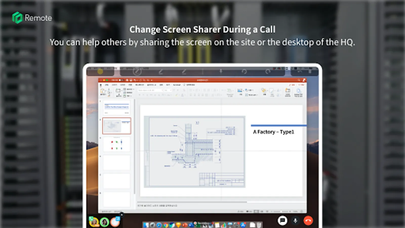Any participant can share her/his view with others and change the user who shares it even during the call, so that your remote support can be more efficient and multifaceted.