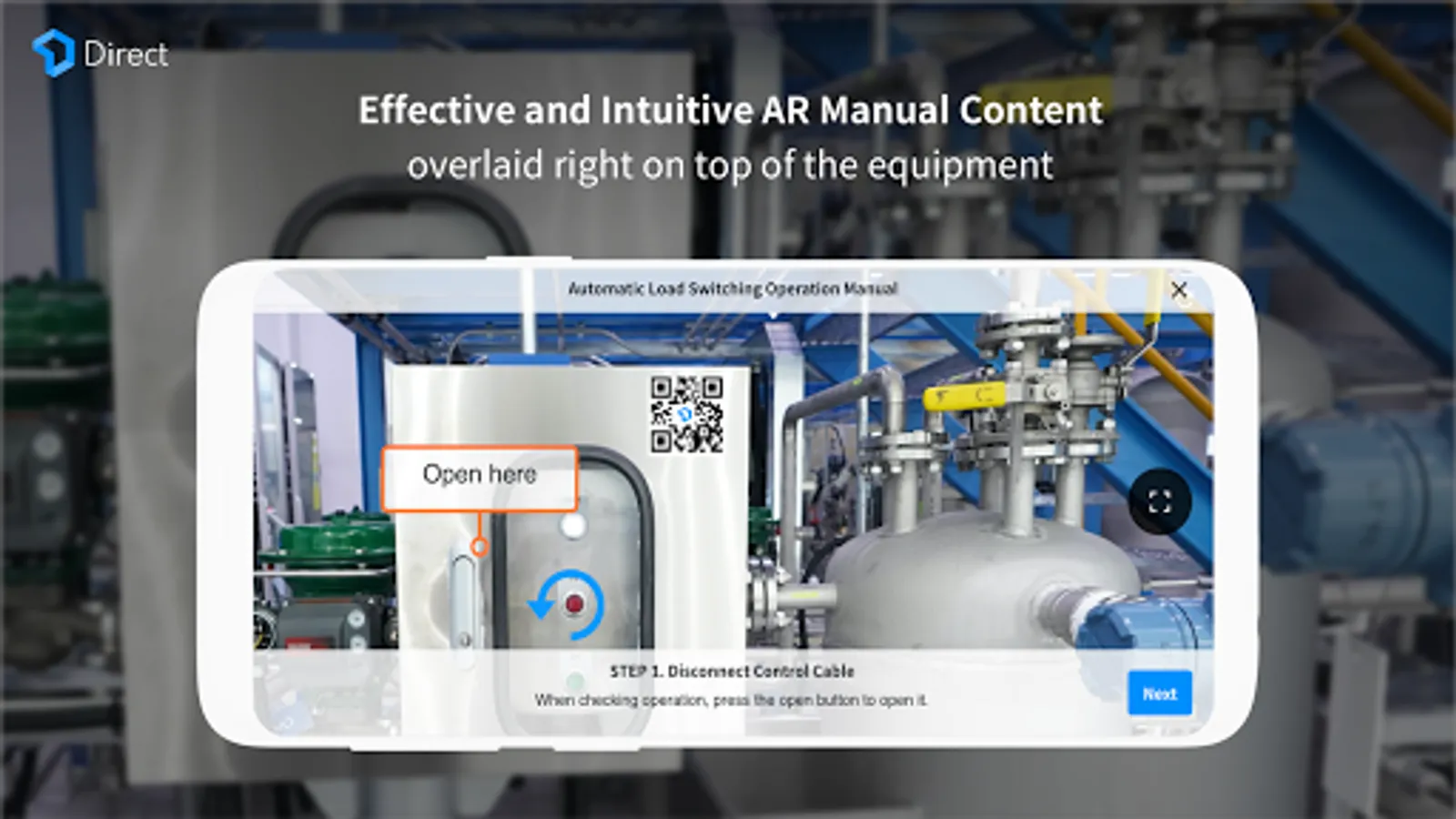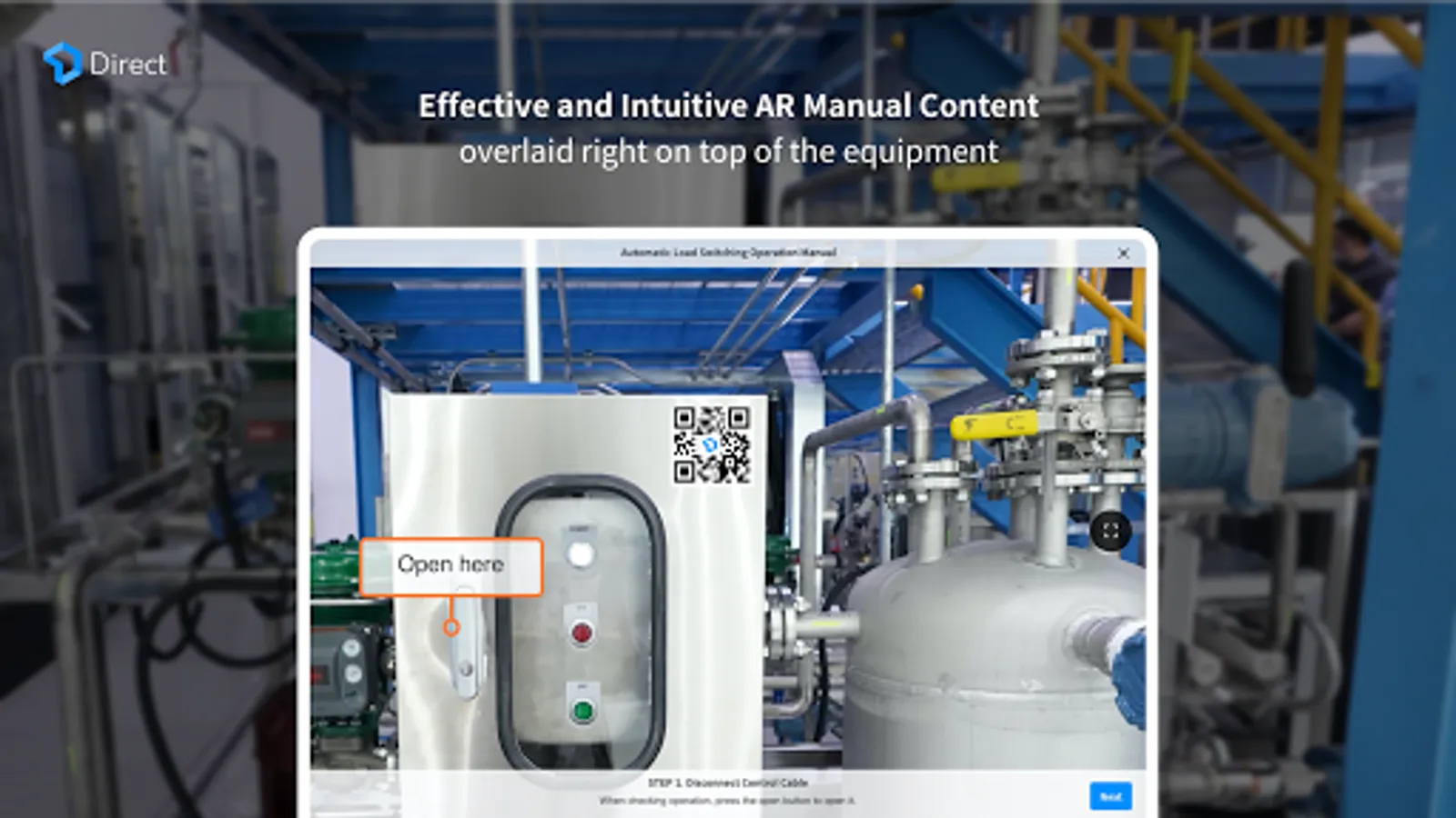 Relevant manuals are overlaid on top of the actual equipment. Operators can quickly and accurately get the job done with the help of visual AR information in the form of texts or images.