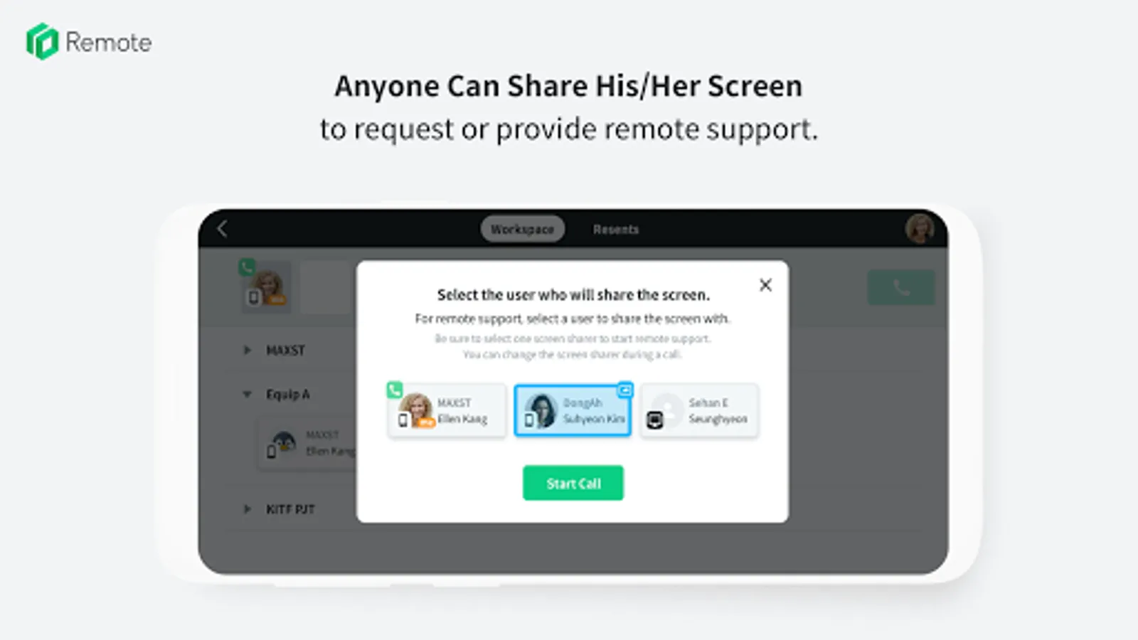 Through the Workspace set by the administrators, remote support can be made in team units, company units, and project units.