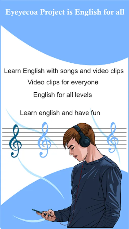 If you want to improve your English listening, vocabulary and understanding of English language, this application is perfect, It uses video clips of songs and movie clips.