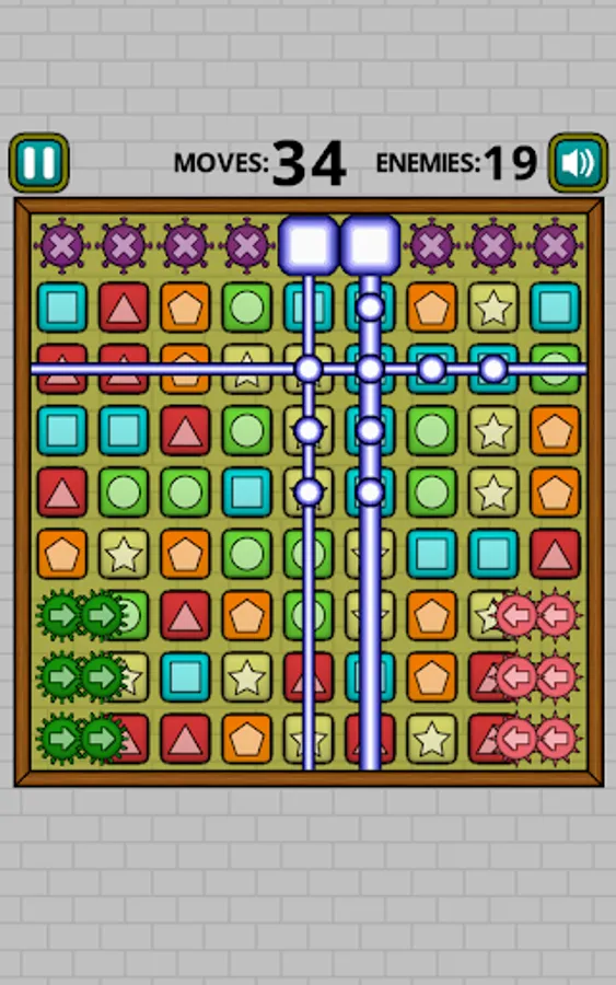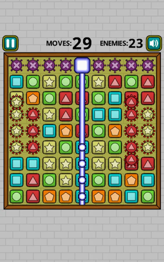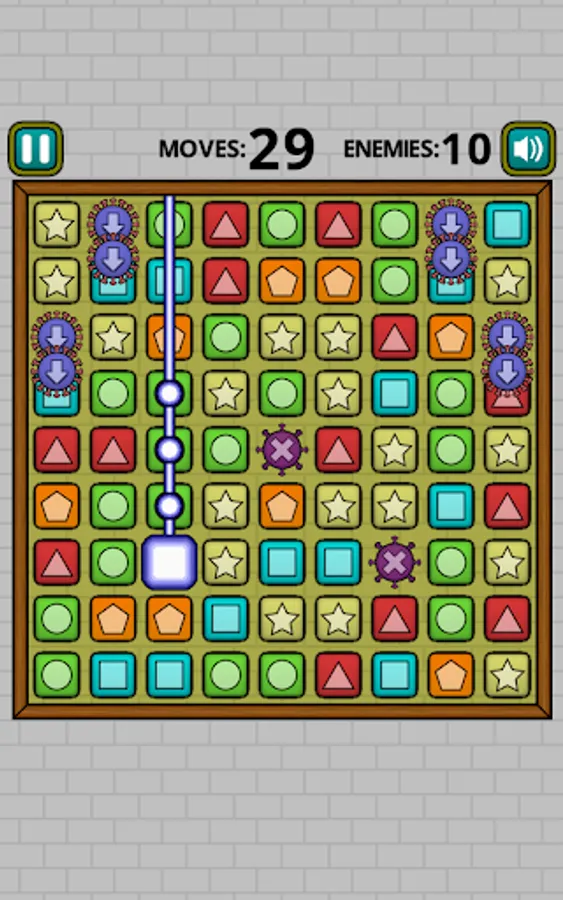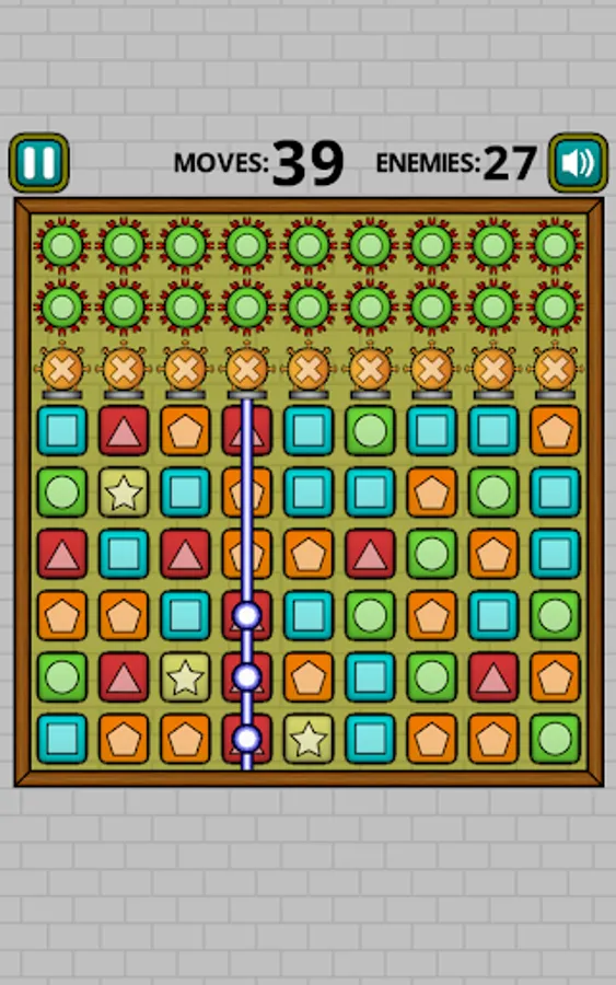 Match blocks to destroy enemies. Drag a block to a neighboring block in order to create a line of 3 or more equal blocks horizontally or vertically.