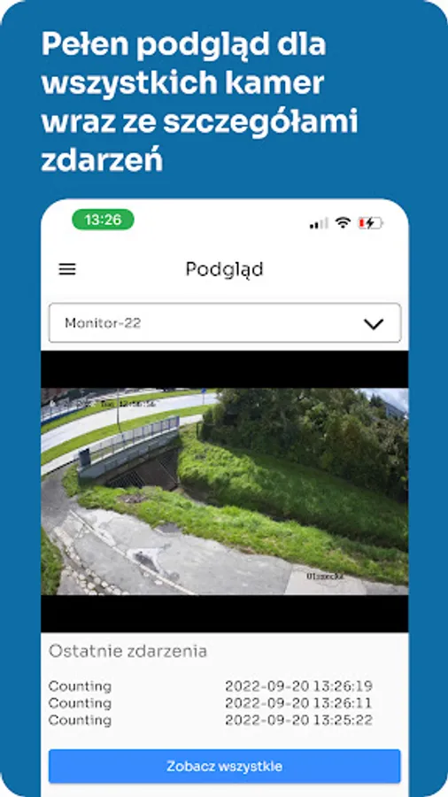 Thanks to the application, you will have a preview of several screens at the same time. You will also see a list of events for each camera.