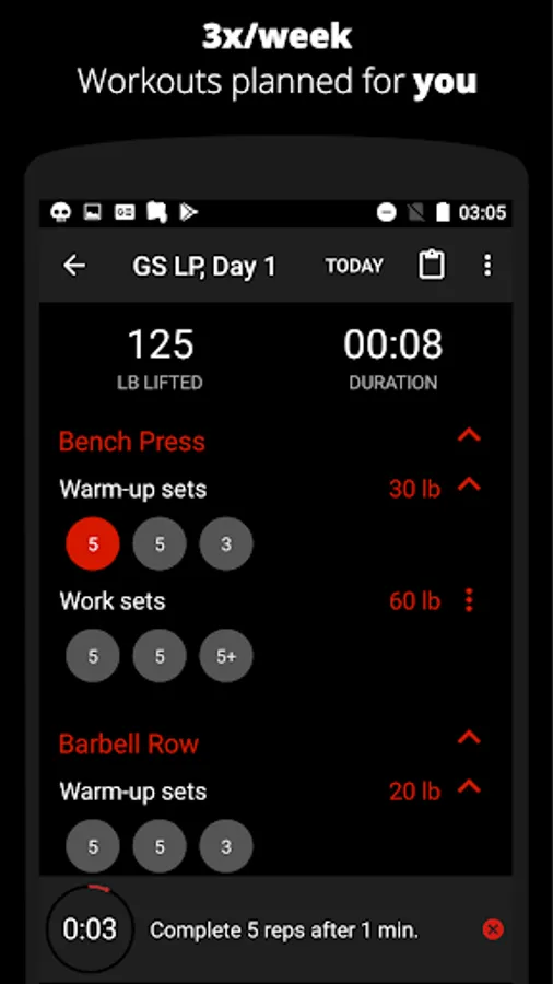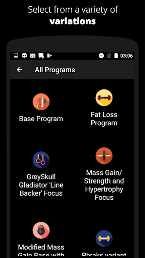 Strength trainer and tracker for GreySkull to gain strength, build muscle, and lose fat. This app is like a strength and muscle building coach in your pocket. It will let you know which exercises to do on which day, how much weight you need to lift for how many sets and reps and how much you need to lift.