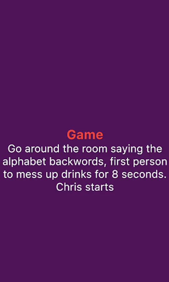 It's a drinking app to keep things simple. Just click, read, and drink. No crazy animations for no reason. Bacchus has 13 categories with around 100 prompts in each.